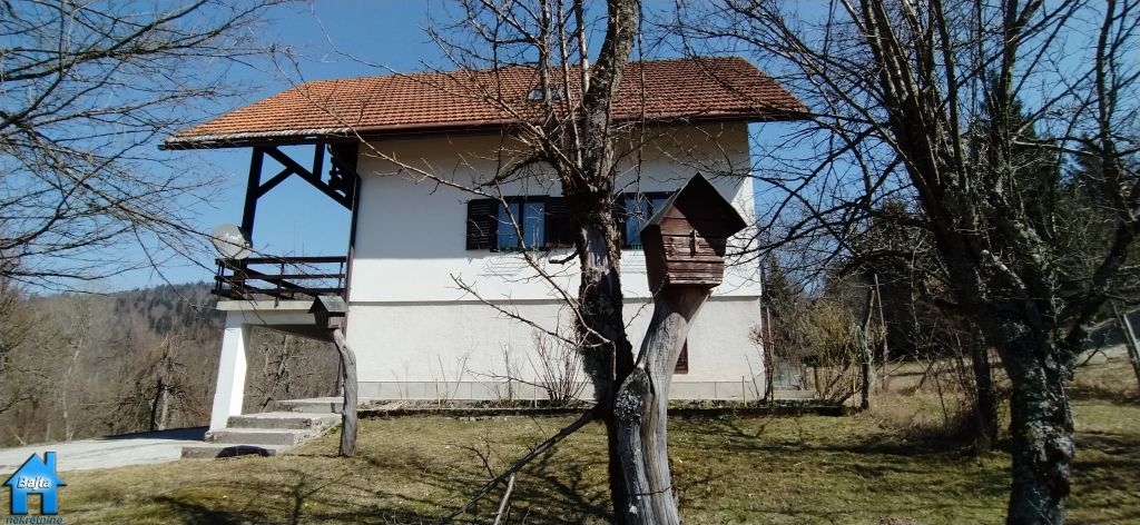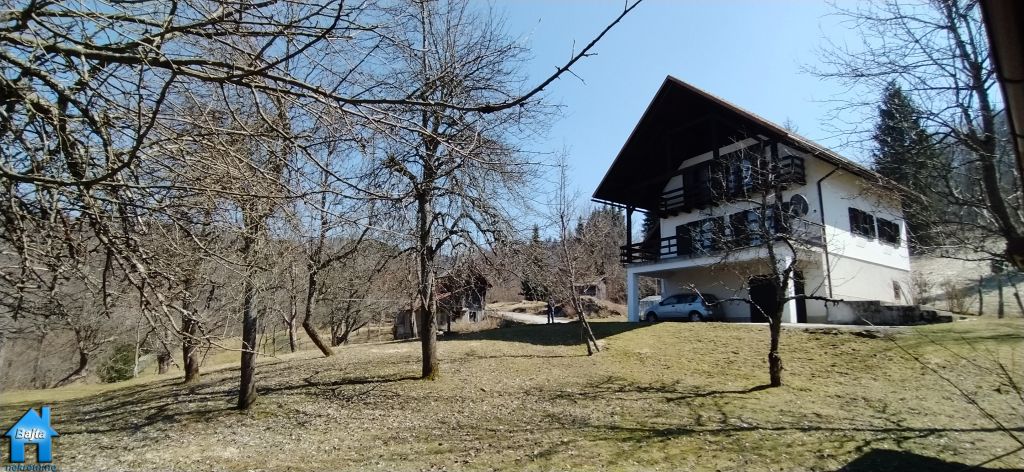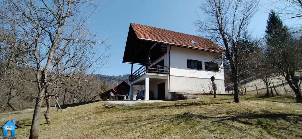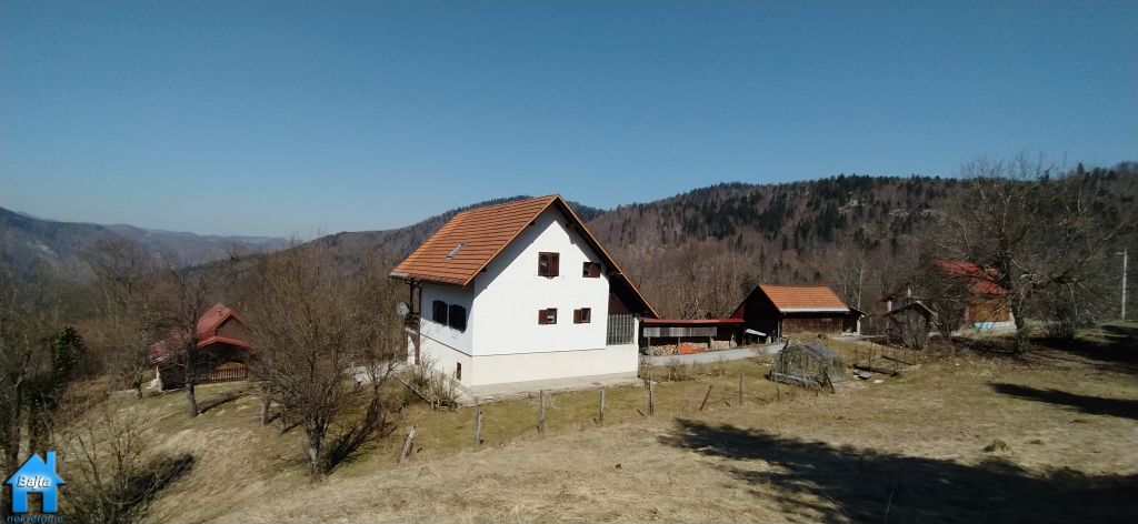 CRNI LUG - nacionalni park Risnjak: Na proplanku manjeg naselja nalazi se prekrasno imanje na parceli od 2500 m2. Asfaltirani put vodi do obiteljske kuće sa pomoćnim objektima koje kao takve čine jednu cjelinu odvojenu od naselja i od pogleda. Kuća je kompletno uređena, stambene površine od 300 m2, na tri etaže. U prizemlju su garaža, podrum, kotlovnica i drvarnica te stepenište koje vodi na kat. Prvi kat je povezan otvorenim stepeništem sa potkrovljem gdje su tri spavaće sobe sa kupaonicom i natkrivenom terasom, a dnevni dio je veliki dnevni boravak sa izlazom na natkrivenu terasu (prekrasni pogled prema slovenskim alpama), blagovaonica sa kuhinjom i hodnik sa toaletom. Sve etaže su povezane sa unutarnjim stepeništem. Okućnica je livada sa voćnjakom površine 2500 m2 na kojem se nalazi jedan manja vrtna kućica i pomoćni objekt. Kuća je pogodna za veću obitelj ili poslovno-turističku djelatnost. Nekretnina je savršen spoj ugode, ljepote i uživanja te je pogodna za druženja s obitelji i prijateljima ali i za turizam.