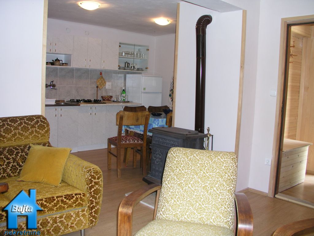 Lijepa kuća,stambeno turističke namjene na tri etaže.Suteren:novo uređen i namješten studio-apartman od 45 m2: veći dnevnim boravak,kuhinja, blagovaona i kupaona sa wc-om.U visokom prizemlju su:kuhinja,kupaona sa wc-om,blagovaona,veliki dnevni boravak,koji ima izlaz na balkon po cijeloj dužini kuće.U potkrovlju su dvije spavaće sobe sa wc-om.Na ograđenom posjedu od 751 m2 nalazi se garaža sa drvarnicom(tlocrtno 25 m2).Postoji mogućnost nadokupa zemljišta uz kuću u površini od 2337 m2.Kuća je udaljena tri kilometra od najvećeg goranskog skijališta,a od prvog susjeda je udaljena sto metara.Vlasništvo 1/1 sa uporabnom dozvolom. |