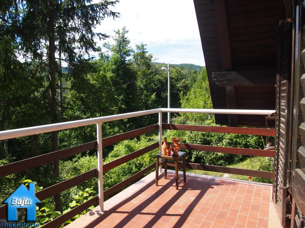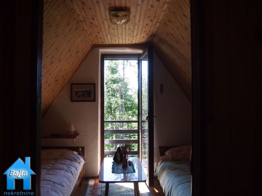 | Opis: | Okružena jelama u vikend naselju nalazi se mala, simpatična vikendica stambene površine 60 m2 na tri etaže. Suteren je spremište. Na katu se nalazi hodnik, dnevni boravak sa blagovaonicom i kuhinjom, kupaonica sa wc-om. Potkrovlje ima dvije spavaće sobe. Tu su i dva balkona, jedan veći sa izlazom iz dnevne sobe, a drugi manji sa izlazom iz spavaće sobe. Drvarnica u dvorištu kuće. Okućnica površine 438 m2 upotpunjena pečenjarom. | |